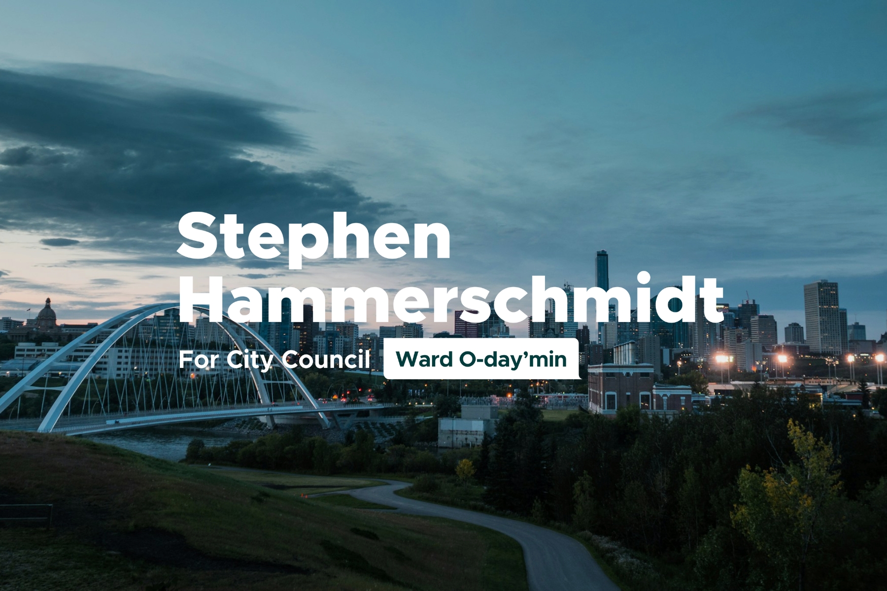 The Stephen Hammerschmidt for Council Campaign acknowledges that we conduct our business on Treaty 6 territory and the Métis Homeland, the ancestral lands of the Cree, Blackfoot, Métis, Nakota Sioux, Iroquois, Dene, Ojibway, Saulteaux, Anishinaabe, Inuit, and many others. These lands, known as ᐊᒥᐢᑲᐧᒋᐋᐧᐢᑲᐦᐃᑲᐣ/amiskwaciwâskahikan, have been a center of trade and innovation for Indigenous peoples since time immemorial.
